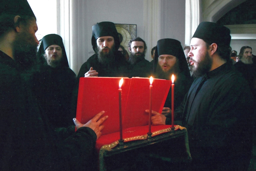 Беседую с ним, а краем глаза уже замечаю: где-то на горизонте замаячил знакомый силуэт отца Георгия... Пасхальные стихиры после крестного хода поют отцы Аверкий, Амвросий, Давид, Георгий, Илия, послушник Вячеслав Сенин. Светлая седмица 2005 года