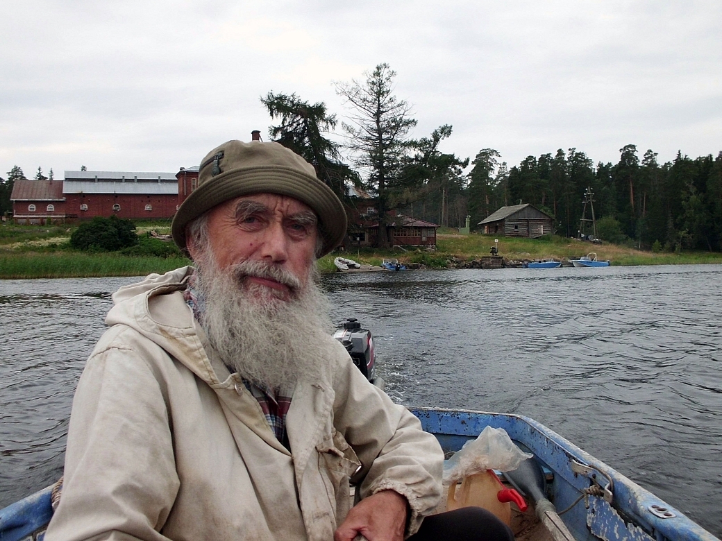 На острове с конца 80-х его все знали как лесника, вальщика, сотрудника метеостанции, работника форелевого хозяйства, заядлого рыбака, мотоциклиста, велосипедиста, лодочника, мастера на все руки и просто хорошего человека. Михаил Васильевич Федяев. Фото монаха Авраама. Июль 2010 года