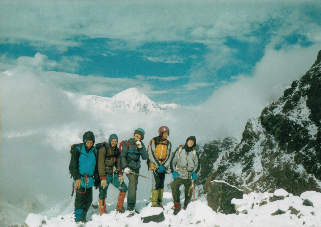 Конечно, сказывалась в нём горная школа. В горах ведь очень быстро приходит понимание того, что в одиночку ты ничего не сможешь. Ничего. Безенгийская стена — наиболее высокий участок Главного хребта Большого Кавказа. Герман крайний справа. 1994 год