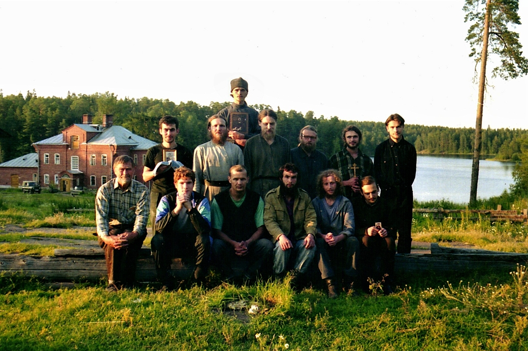 Начало июля 1998 года, фермерская братия: Алексей (монах Авраам), Дмитрий (иеромонах Досифей), послушник Сергий (схимонах Сергий), послушник Александр (монах Агафадор), послушник Андрей, Вячеслав (иеромонах Вениамин), Герман (монах Георгий)