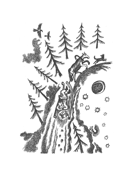Звёзды, месяц — прямо как в кино «Ночь перед Рождеством». Собака лает, кот на печке спит, куры у трапезной копошатся, две коровы по островку гуляют. Коров первый раз здесь вблизи увидел. Тёлку игривую испугался, за быка принял, на дерево от неё залез.