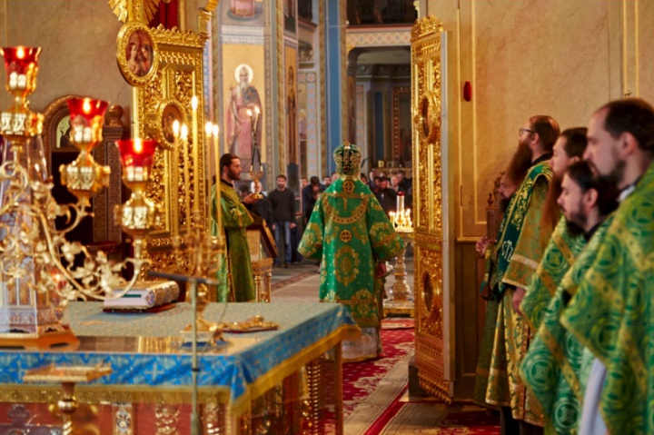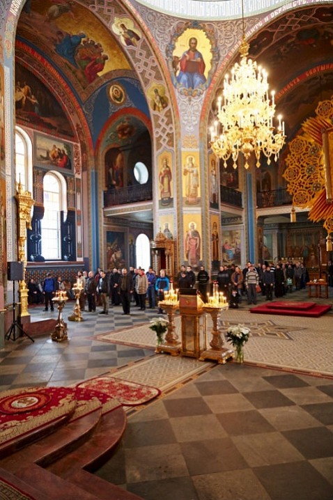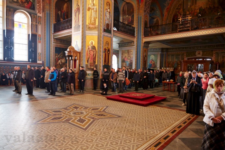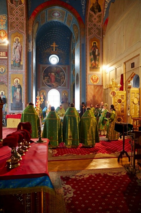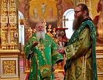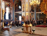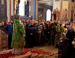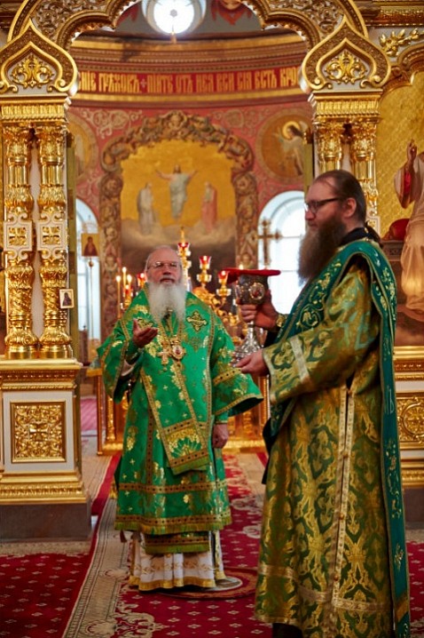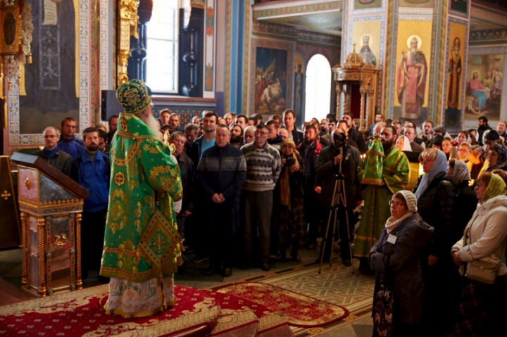 По окончании Литургии, владыка Панкратий совершил славление основателям Валаамского монастыря у их честных мощей.