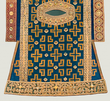 По преданию, существовавшему в Чудовом монастыре, митрополит Алексий был погребен в этом саккосе. После чудесного обретения нетленных мощей святителя оказалось, что облачение его ...