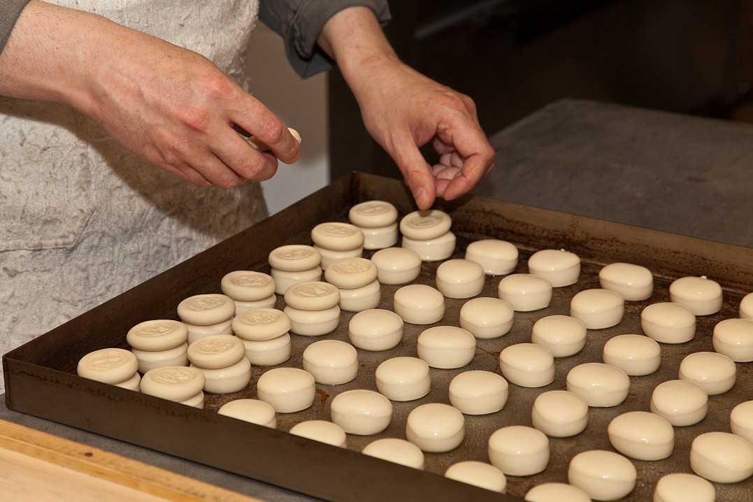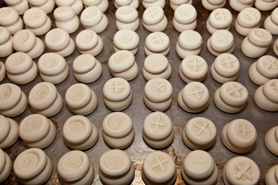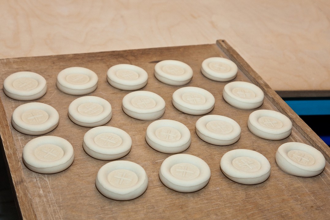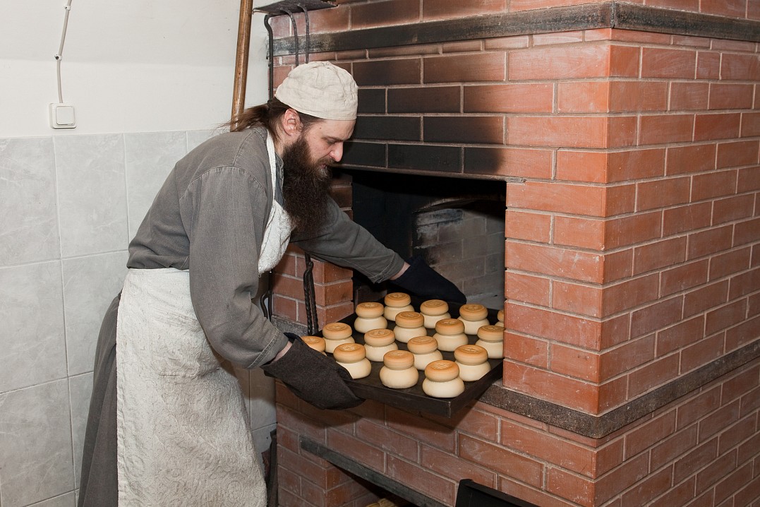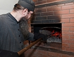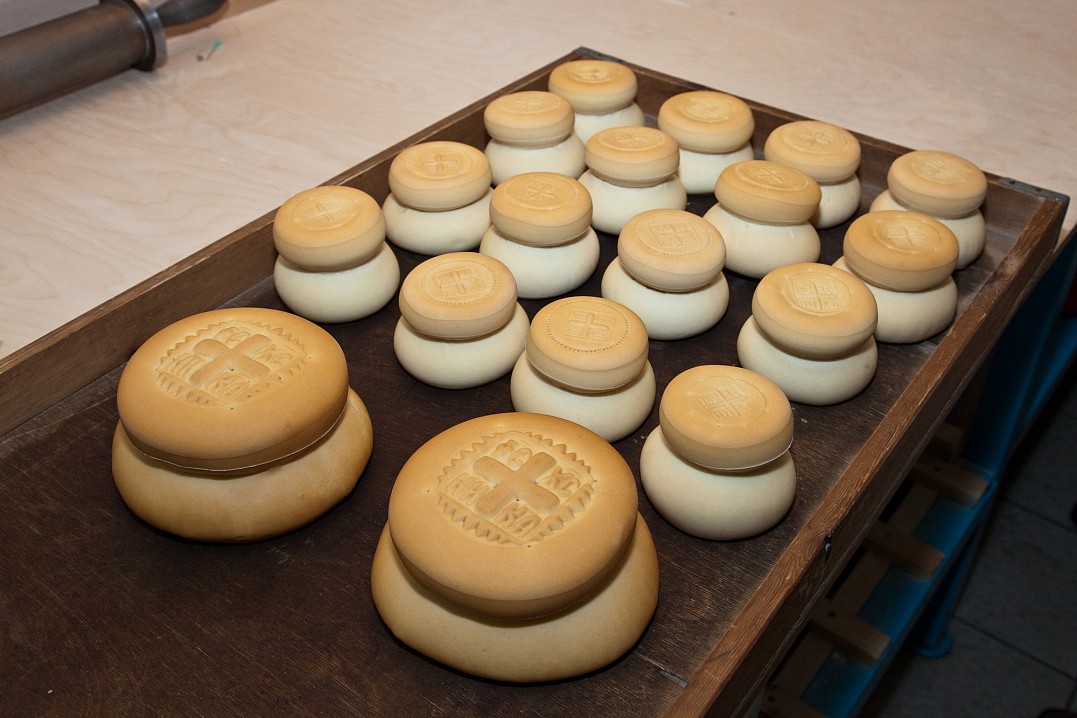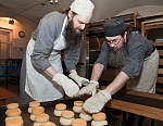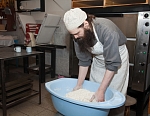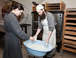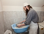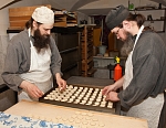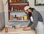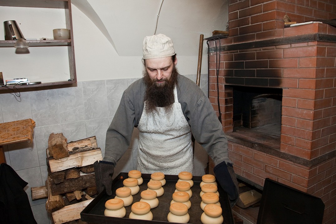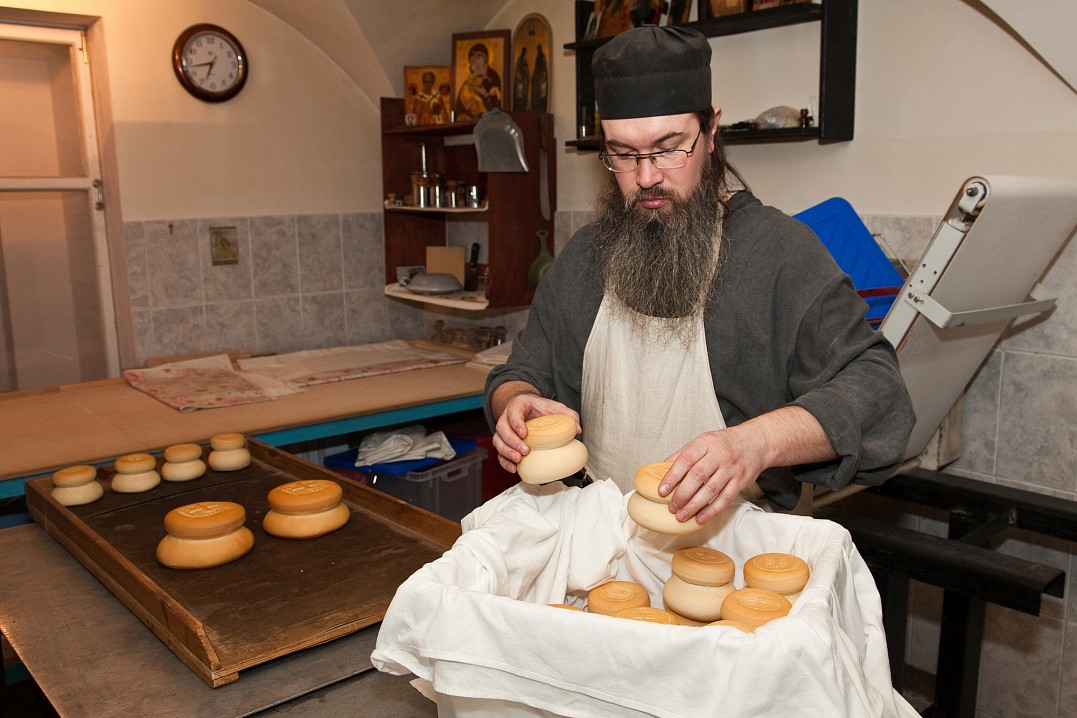 На послушании в Просфорне. На фото: иеродиакон Дамиан, послушник Никон (монах Никандр). Март 2009 года.