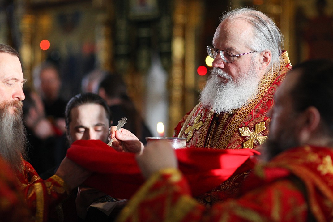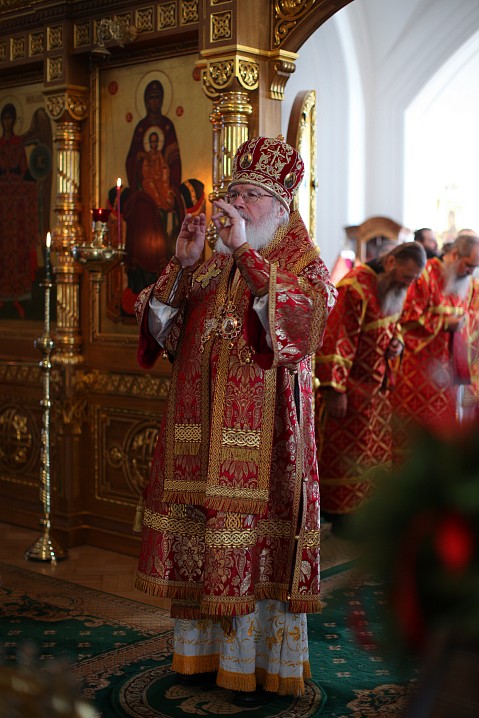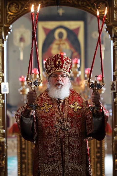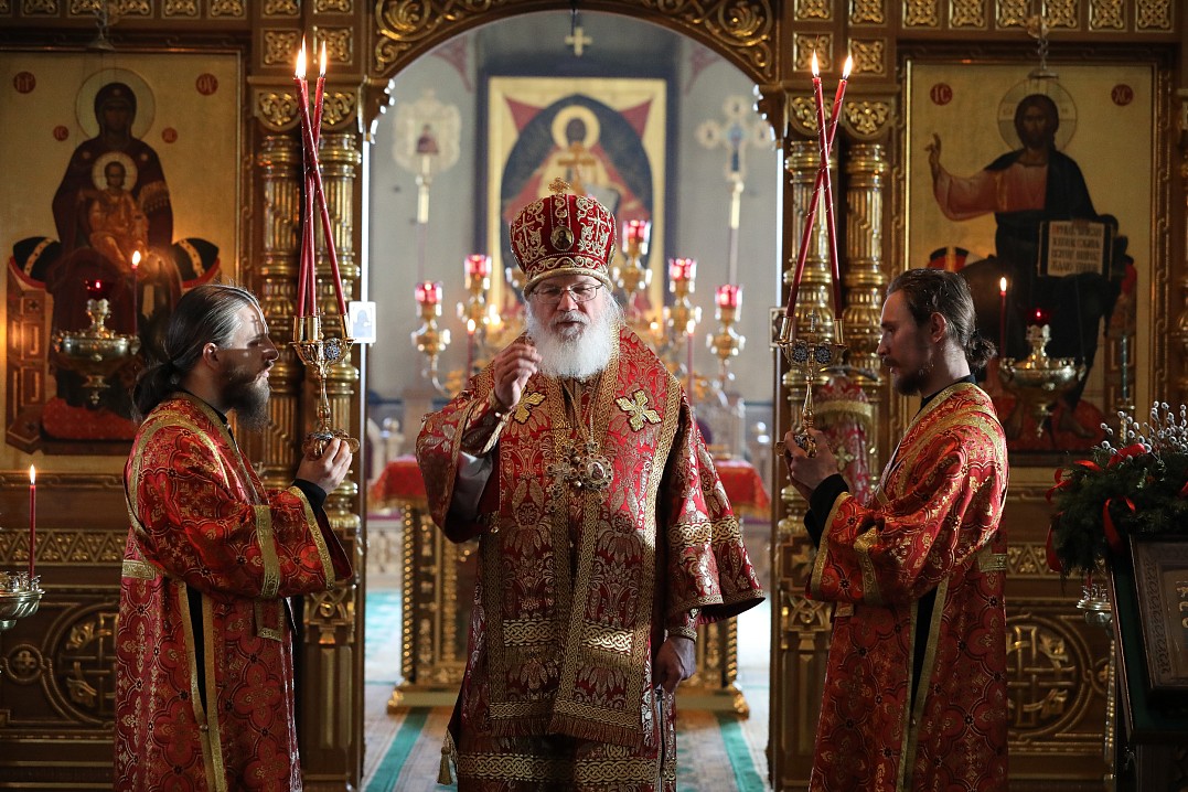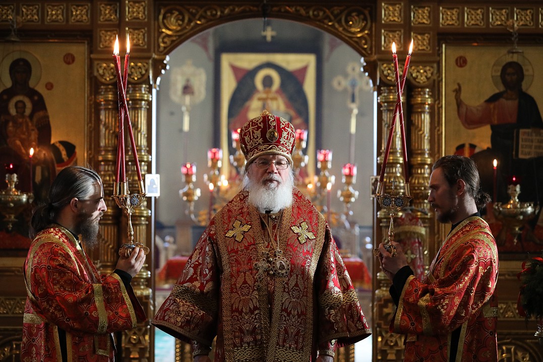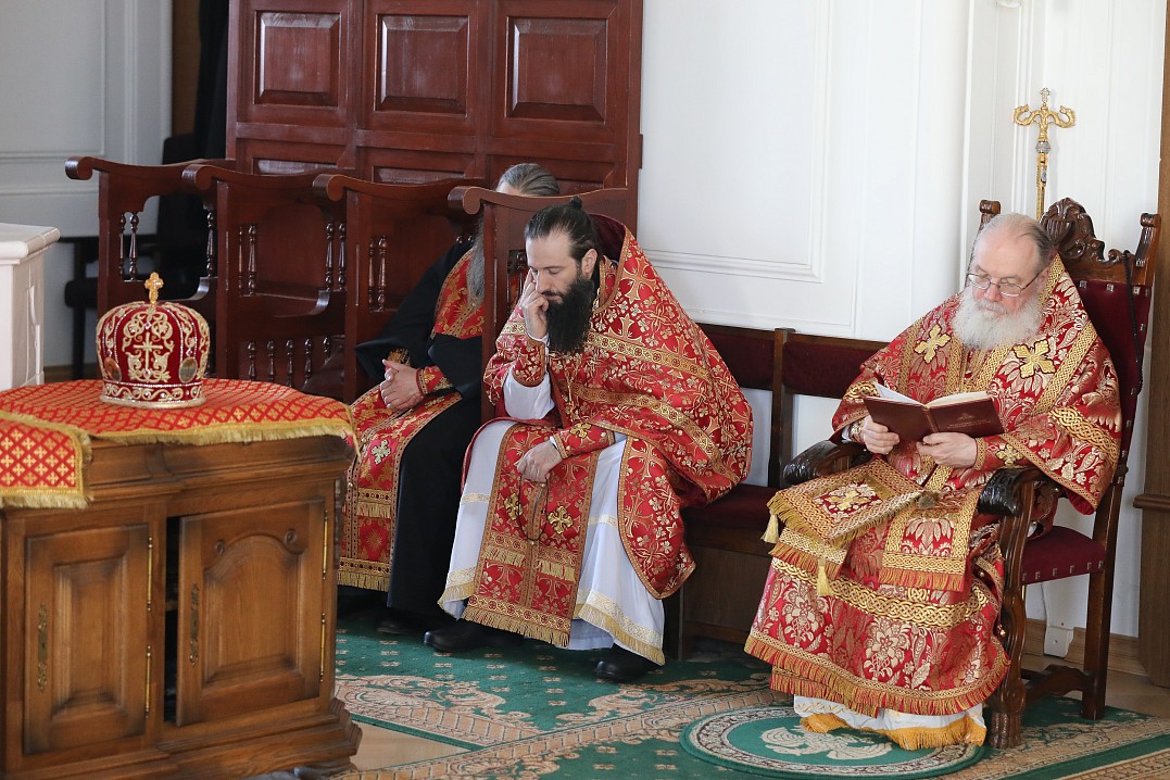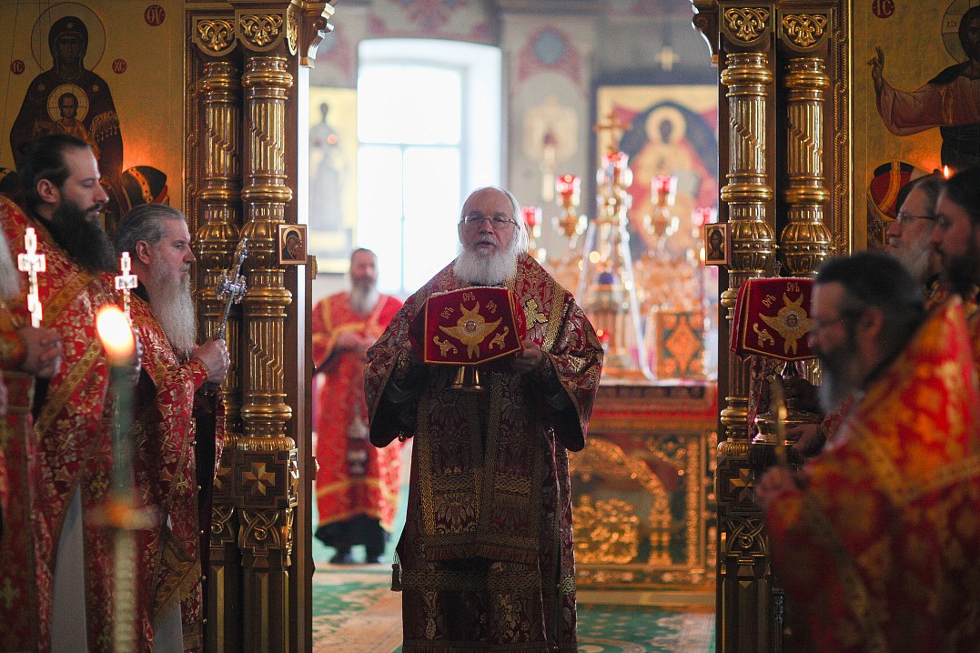 10 мая 2020 года, в Неделю 4-я по Пасхе, о расслабленом, Преосвященнейший Панкратий, епископ Троицкий, совершил Божественную литургию в Спасо-Преображенском соборе Валаамского монастыря в сослужении братии обители