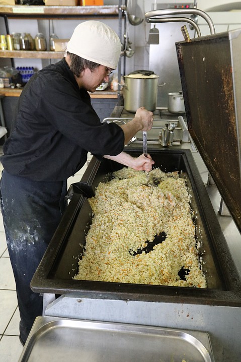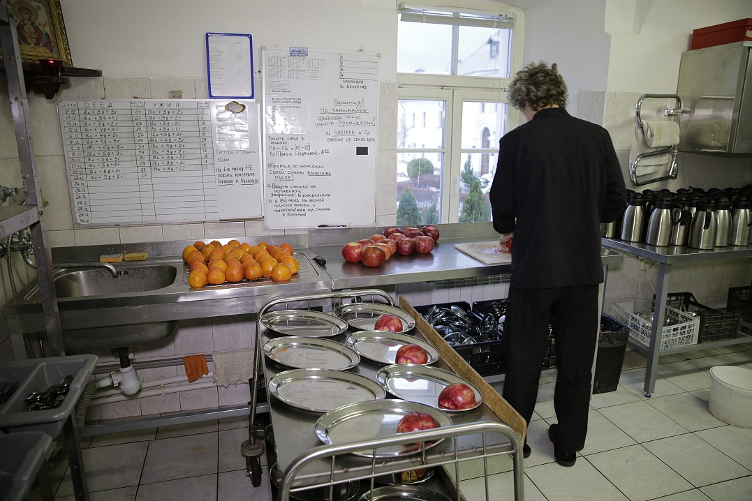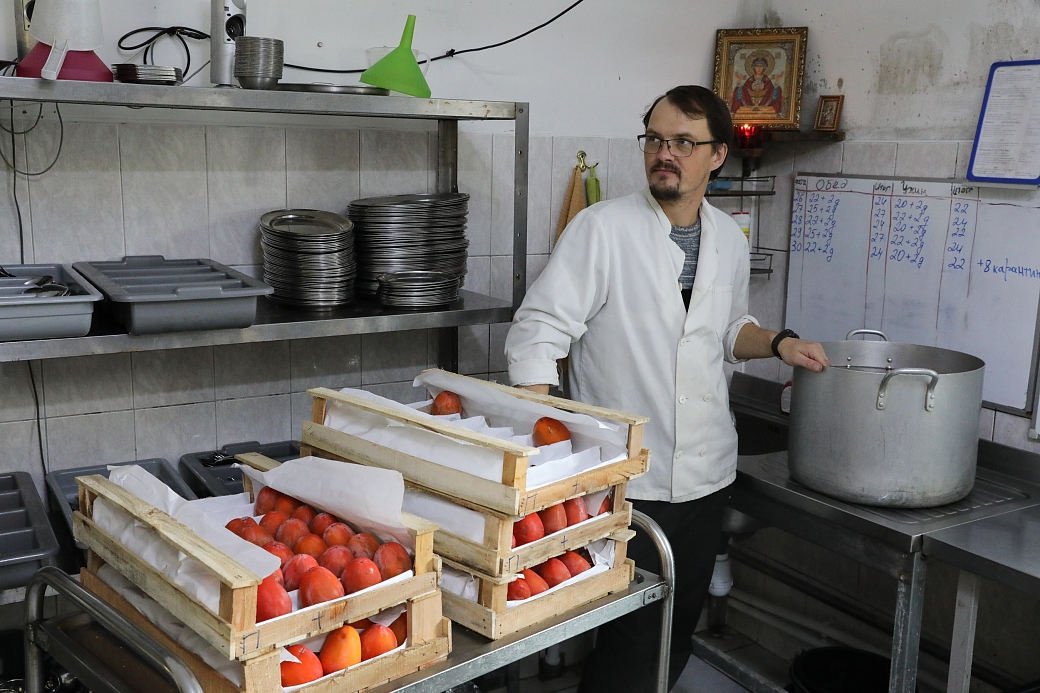 — Я стараюсь делать минимум отличий. В братской трапезной еда, конечно, получше. Если говорить о праздниках, то и в Новой трапезной довольно-таки хорошее, интересное меню для волонтёров и гостей, очень похожее с нашим. Молочные продукты, овощи — это все по умолчанию у них тоже есть. А паломническая трапезная не находится в моем подчинении.