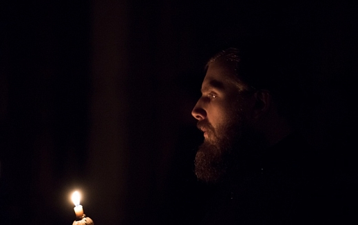 На улице было темным-темно, а с бухты тянуло ледяным ветром. И только яркий прожектор с колокольни собора освещал путь, словно маяк в море. К храму со всех уголков монастыря стекались темные силуэты. По кругу внутреннего каре монастыря шел монах и настукивал какой-то ритм в длинную деревянную палку на плече. Как я потом узнал, это специальный будильник для братии – било.