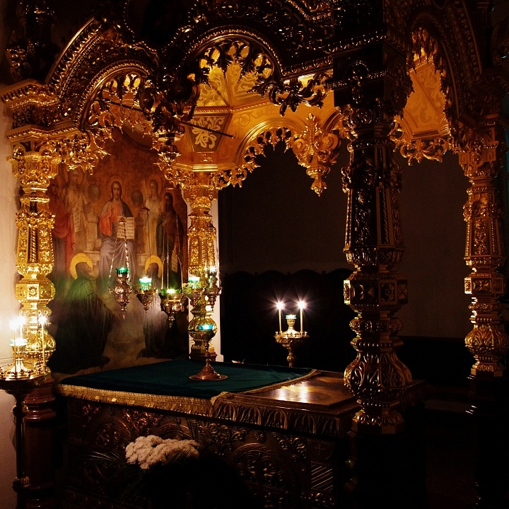 В нижнем храме собора тоже было темно, только горели свечи и лампадки, а в двух огромных круглых печах, стоящих у задней стенки, уже вовсю трещали дрова. Я пристроился возле одной из них и стал слушать, как тихо и медленно читали кафизму: спокойный монотонный голос разливался по всему храму и растворялся где-то в темноте.