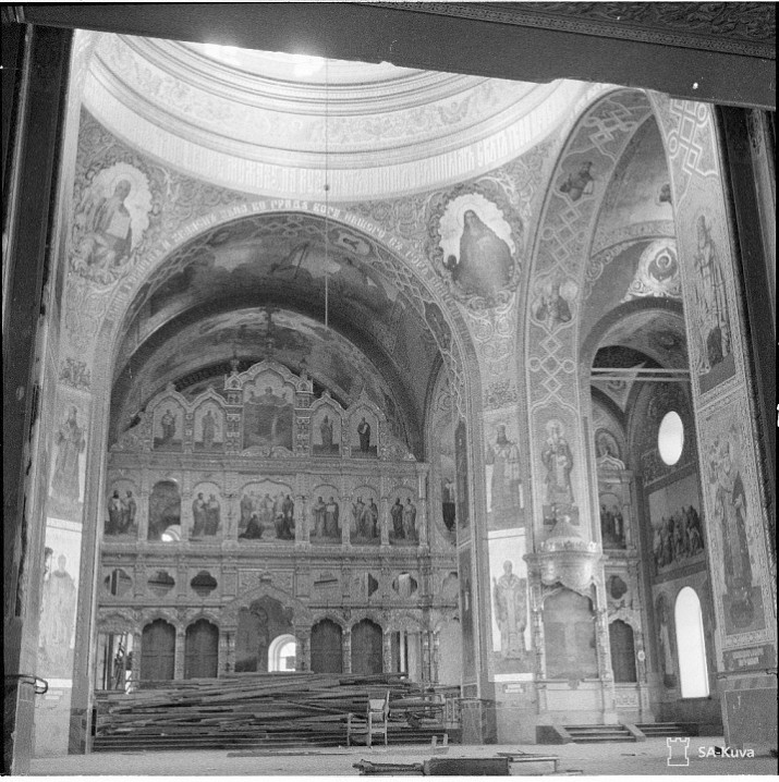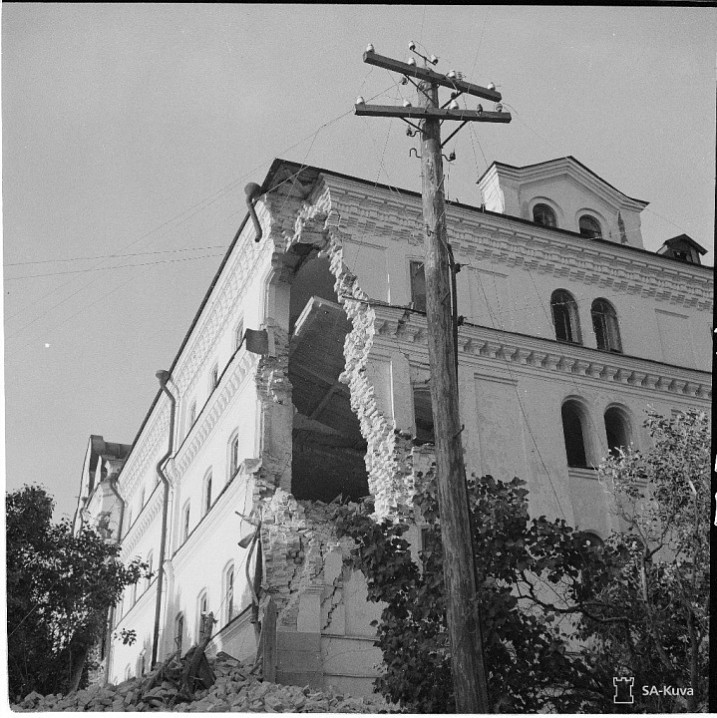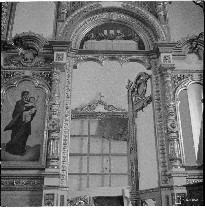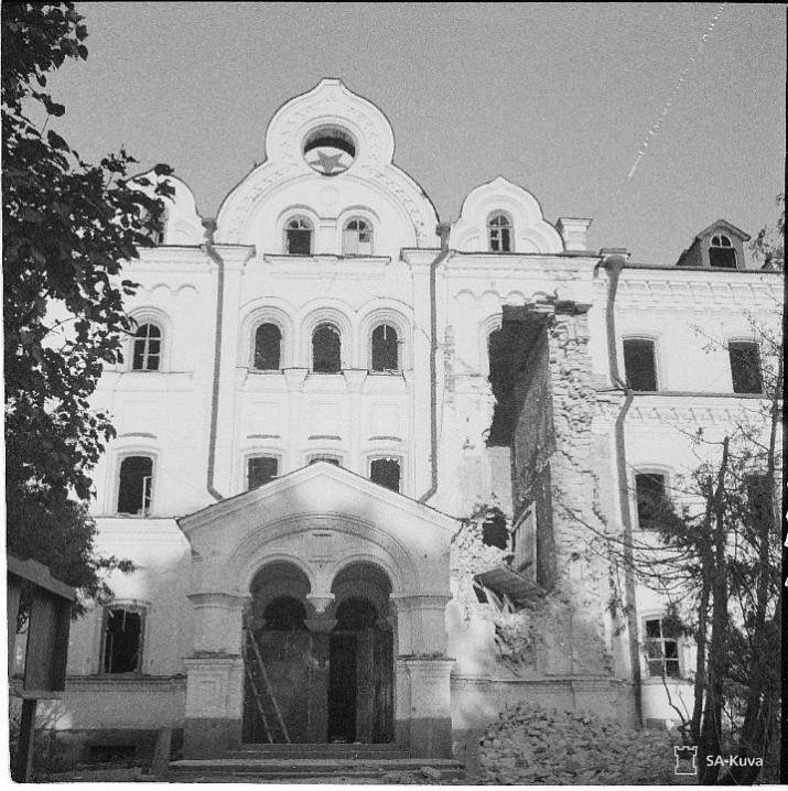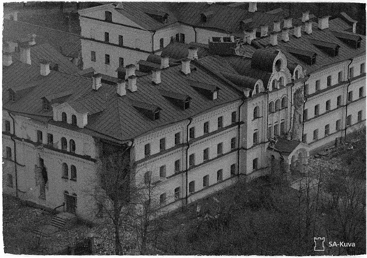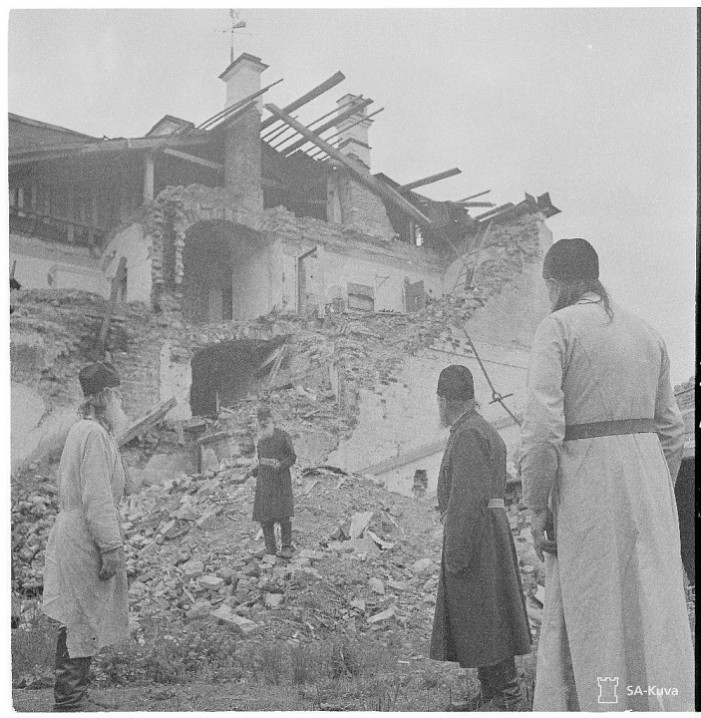В марте 1940 года большевиками с аэропланов были разрушены церкви Святой Троицы и Живоносного Источника, а также больничный, ризничий корпуса, машинный дом, киновия и другие здания. В уцелевших же от разрушения в предыдущую войну монастырских зданиях были сделаны некоторые переделки в связи с потребностями новых хозяев острова, но при своем уходе с Валаама они везде разбили стекла, сломали оконные рамы и двери, мебель.