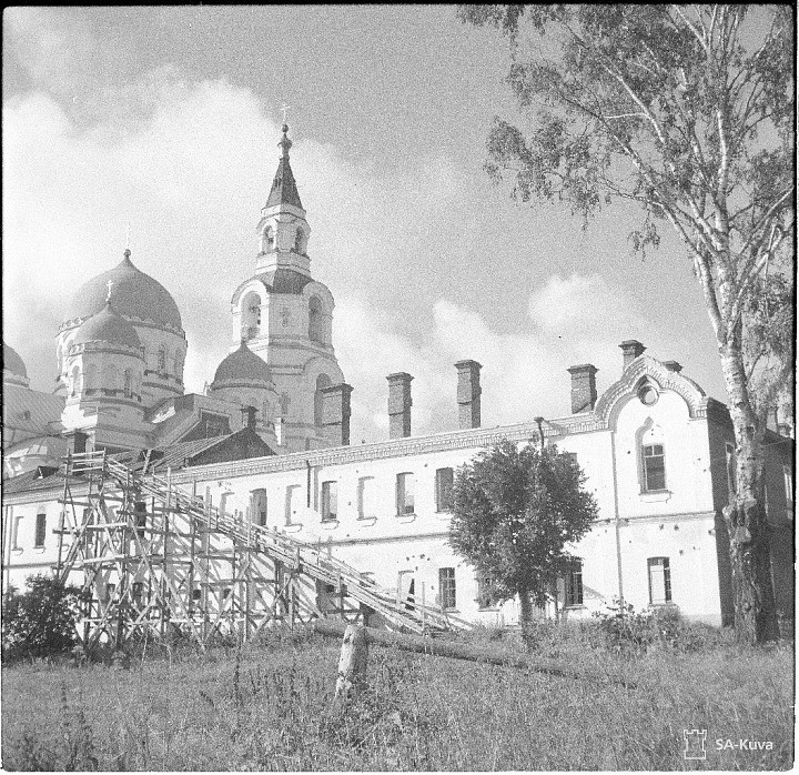 В феврале 1940 года в очень короткий срок по льду Ладожского озера на машинах и лошадях удалось эвакуировать в глубь территории Финляндии монастырскую ризницу, библиотеку (20 тысяч томов), архив. Небольшая часть монастырской библиотеки осталась на месте и в дальнейшем была передана в Государственную Публичную библиотеку Ленинграда.