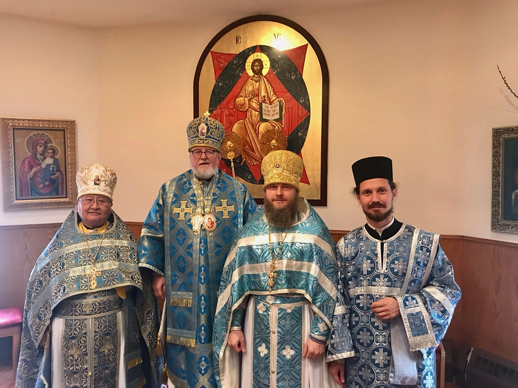 Проснулись крайне рано. И я и батюшка. Видно, из-за разницы во времени, несмотря на усталость от перелетов. Позавтракали. В 11.00 за нами приехал раб Божий Терентий - водитель владыки Давида - и отвёз нас в кафедральный собор святителя Иннокентия Московского, где проходило ежегодное собрание духовенства. Ко времени нашего прибытия у них была трапеза, к которой нас и пригласили, а Владыка представил нас своему клиру и пастве.