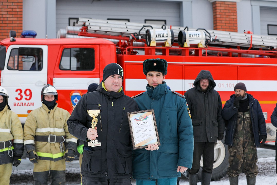Главным управлением МЧС России по Республике Карелия Добровольная пожарная команда о. Валаам была награждена почетной грамотой и кубком.