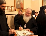После совершения чина освящения Владыка обратился ко всем собравшимся с архипастырским словом, в котором поблагодарил генерального директора и представителей реставрационной компании «Интарсия» за вклад в возрождение Валаамской обители. Он наградил благодетелей почетными грамотами и медалями прпп. Сергия и Германа Валаамских чудотворцев II степени, а также вручил памятные подарки. Затем все присутствующие смогли послушать выступление хора Санкт-Петербургского подворья Валаамского монастыря.