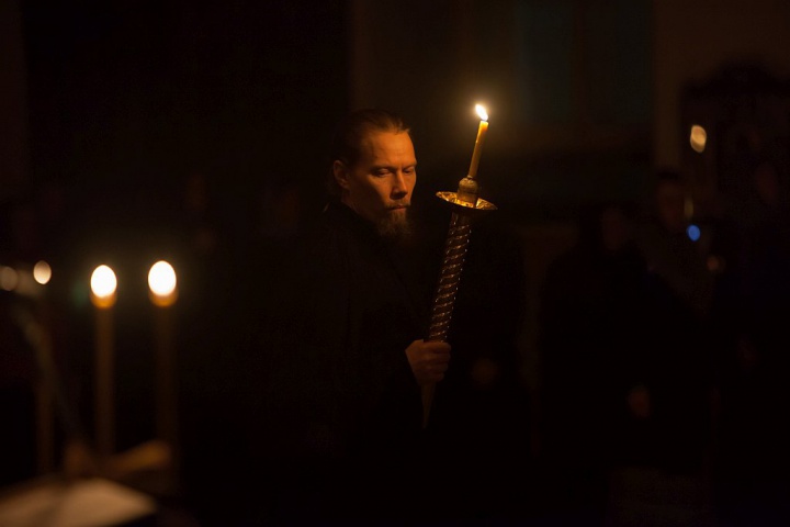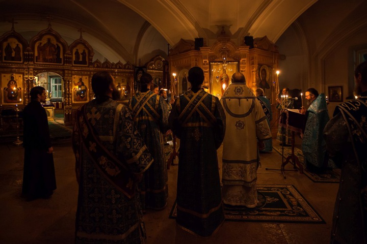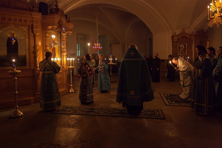 Игумен монастыря совершил утреню с чтением Акафиста Пресвятой Богородице