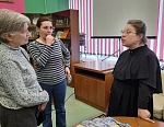 Необходимо отметить, что благодаря пожертвованиям Николая Белавинского книжный фонд библиотеки пополнился значительным количеством книг и альбомов о Валааме. Не забывал он и о своих слушателях, получавших на встречах валаамские сувениры. Традицию продолжила наша ведущая Ольга, одарив всех присутствующих наборами открыток с прекрасными видами Валаама. Мы, в свою очередь, преподнесли ей сборник стихов Николая Рубцова.