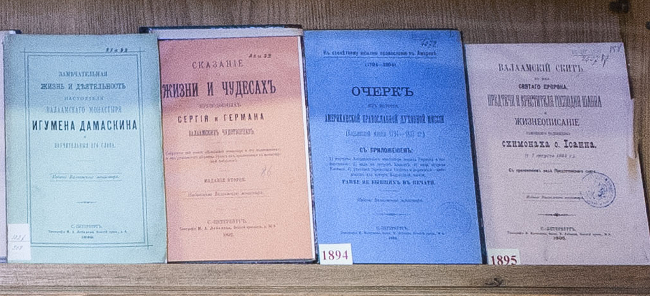 Помимо этого, фонды библиотеки пополнились книгами «Монастырские острова Валаам и Коневец» 1895 года, «Епархиальное древлехранилище в Валаамском монастыре» 1913 года и «Валаамская обитель» 1896 года.