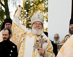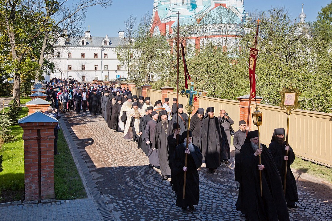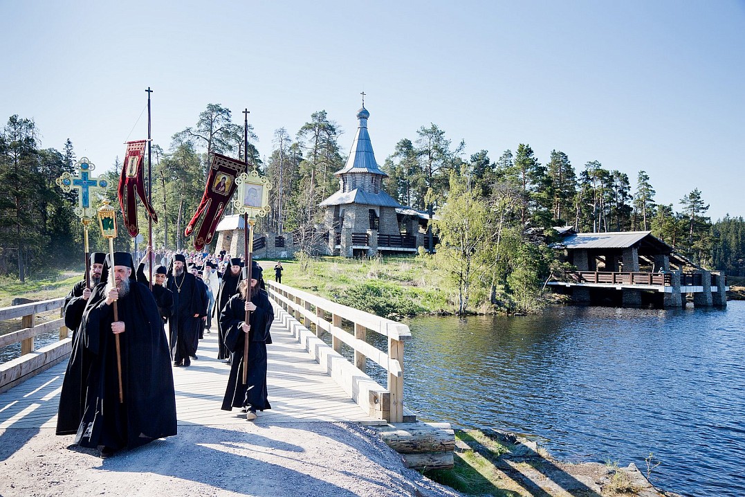 По традиции, в 8 часов утра крестный ход начался от главного храма монастыря – Спасо-Преображенского собора. Братия с песнопениями, неся хоругви и иконы, прошли к Монастырской бухте, после чего на катерах отправились в скит святителя Николая. С крестным ходом проследовала в пути и святыня – ковчег с частицей святого. Обычай совершать крестные ходы очень древний. Он существовал еще в апостольские времена. Впоследствии был широко распространен на Руси. Издревле крестные ходы были одним из действенных средств сохранения от зла, от нашествия врагов, защиты от стихийных бедствий, эпидемий и болезней.