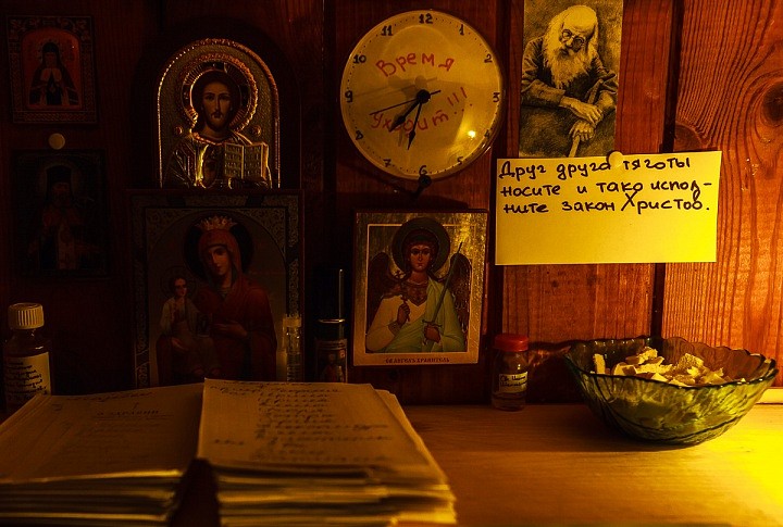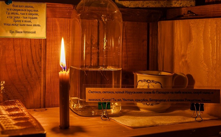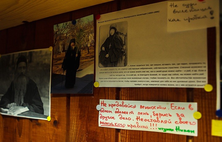 "Береги себя прилежно и в следующем: не выходи безвременно из келии твоей, кроме необходимой нужды, например, чтобы послушать, любви ради, ближнего, или чтобы немощному послужить, или если от Настоятеля куда послан будешь и скорее в келию свою возвращайся с покойным духом".