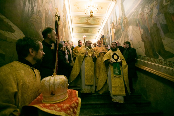 Также, в своем слове владыка поблагодарил игумена Иосифа, под чьим руководством происходил процесс ремонтно-восстановительных работ в нижнем храме: «Я благодарю отца Иосифа, благодарю тех людей, которых он привлек к тому, чтобы этот храм полностью приобрел свой первозданный вид. Я желаю, помощи Божьей всем тем, кто помогал трудиться над восстановлением храма, и тем, кто молится здесь, и тем, кто окормляет паству подворья, чтобы каждый из вас честно, добросовестно и с полной отдачей души и сердца, с любовью к Богу, к ближним исполнял свое делание, свое послушание. Да хранит вас Господь и Матерь Божья!». По завершении проповеди молящиеся пропели «Вечную память» приснопамятному Патриарху Алексию II, устроителю подворья схимонаху Иоанну (Собакину) и благотворителям, трудами которых в начале ХХ века было построено здание подворья. В след за этим были пропеты «Многая лета» Святейшему Патриарху Кириллу, епископу Панкратию, клирикам, братии, прихожанам, а также благотворителям подворья, благодаря лептам которых были осуществлены реставрационные работы.