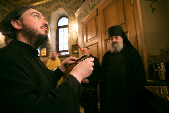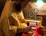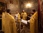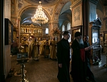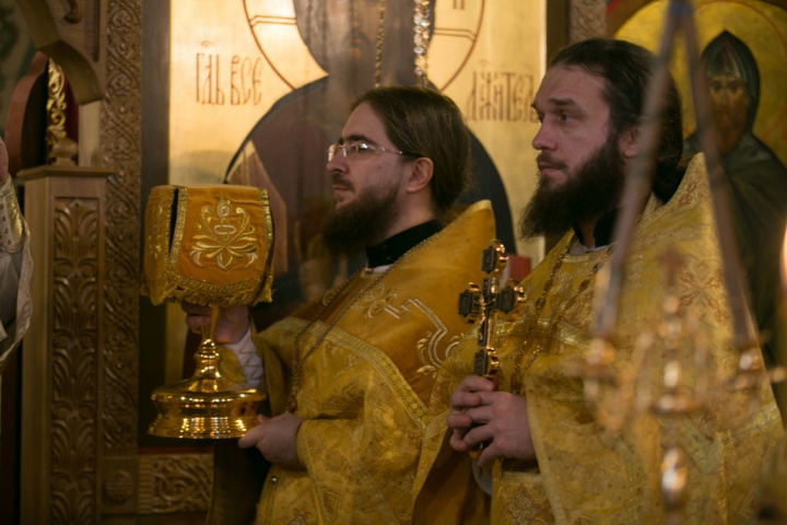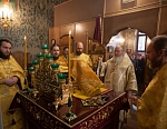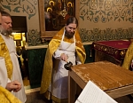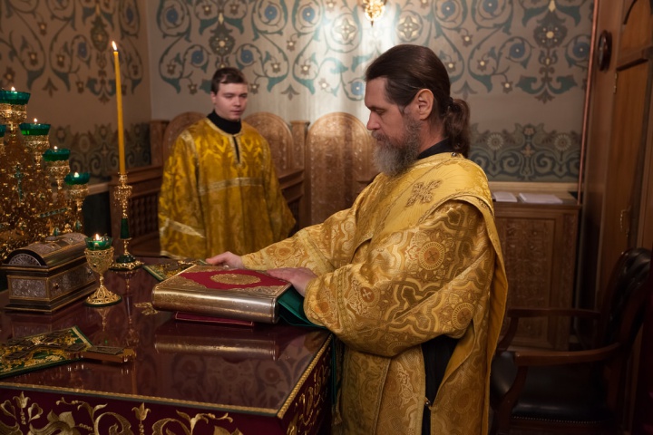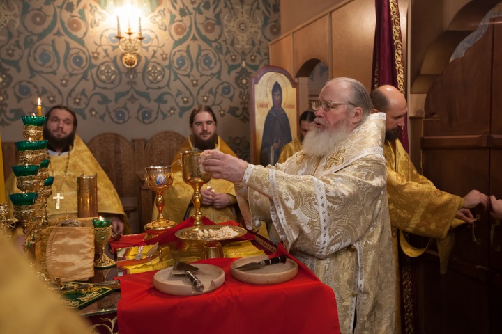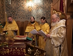 Его Преосвященству сослужили игумен Иосиф (Крюков), и.о. начальника подворья и насельники подворья в священном сане. Диаконское служение возглавил насельник Валаамского монастыря иеродиакон Августин (Беликов) в сослужении диакона подворья Андрея Ильинского.