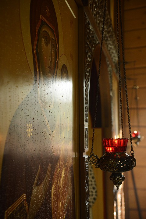 Я хотел бы выразить сердечную благодарность всем вам. А в память об этом малом освящении храма в честь преподобного Германа Аляскинского хотел бы передать этот образ преподобного Серафима Саровского с памятной дарственной надписью. Пусть этот образ пребывает в этом святом храме. Спаси Господь всех нас».