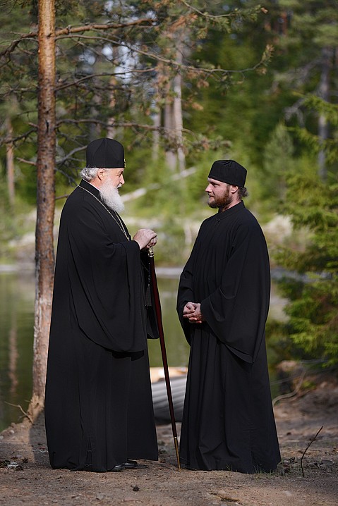 Затем Предстоятель Русской Православной Церкви совершил прогулку по острову, посетив часовню пророка Елисея, келейный корпус и хозяйственные постройки.