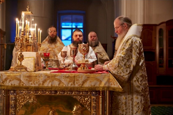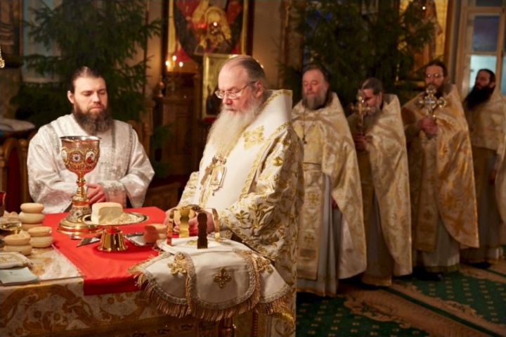 Утром 6 января 2016 г., в Навечерие Рождества Христова (Рождественский сочельник), игумен Валаамского монастыря епископ Троицкий Панкратий совершил Великую вечерню и Божественную литургию святителя Василия Великого в главном Соборе монастыря.