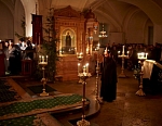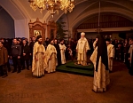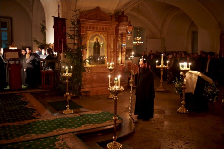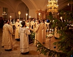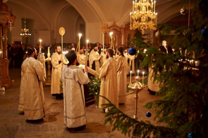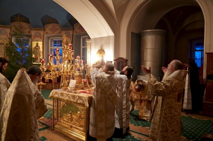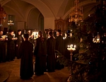 Богослужения совершались сегодня утром во многих скита Валаамской обители. Особо торжественной была служба в Спасо-Преображенском соборе. На богослужении в этот день читалось множество фрагментов Священного Писания, в которых повествуется о Рождестве Христовом, читаются пророчества из Ветхого Завета о пришествии Христа.