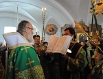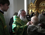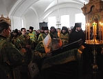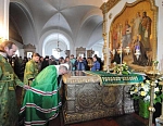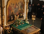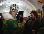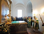 Всем присутствовавшим на богослужении по благословению Святейшего Патриарха были розданы образки преподобного Назария, игумена Валаамского, - копии иконы святого, написанной иконописцами обители к 200-летию со дня его преставления.