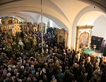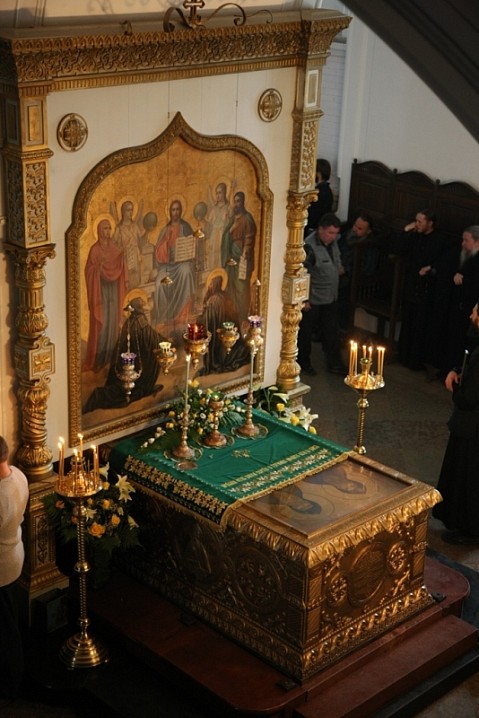 10 июля 2009 года, накануне праздника преподобных Сергия и Германа, основателей монашеской жизни на Валааме, Святейший Патриарх Московский и всея Руси Кирилл в сослужении исполняющего обязанности управляющего делами Московской Патриархии архиепископа Саранского и Мордовского Варсонофия, архиепископа Петрозаводского и Карельского Мануила, главы Административного секретариата Московской Патриархии епископа Солнечногорского Сергия, игумена Валаамского монастыря епископа Троицкого Панкратия совершил Всенощное бдение в нижнем храме монастырского собора в честь Преображения Господня. В этом храме пребывают честные мощи преподобных Сергия и Германа Валаамских.