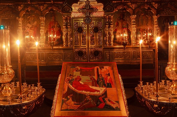 Всенощное бдение на Праздник Рождества Пресвятой Богородицы прошло в верхнем храме главного собора Валаамской обители. Так как Спасо-Преображенский храм не отапливается, службы в нем проходят только в теплое время года. Следующее всенощное бдение пройдет уже в нижнем зимнем храме преподобных Сергия и Германа Валаамских чудотворцев.