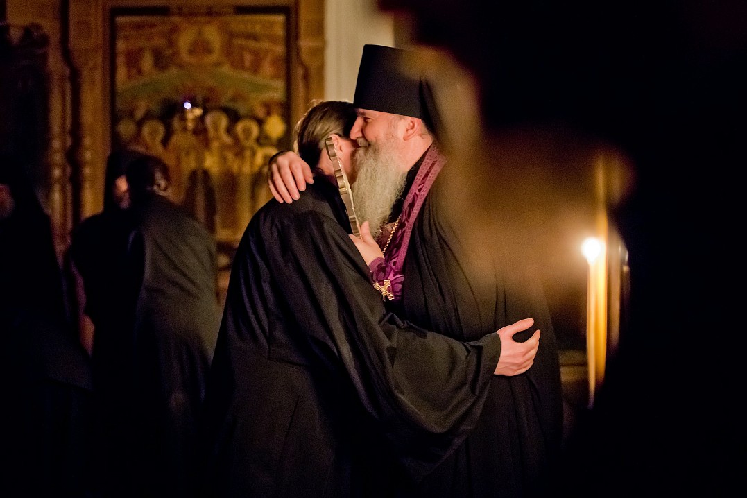 Затем вся братия и присутствующие в храме подходили к игумену Мефодию, делали поклон (поясной или земной) и испрашивали у него прощение, принимая благословение, и просили друг у друга прощение. Весь храм наполнился словами: