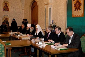 В заседании приняли участие Полномочный представитель Президента в Центральном федеральном округе Г.С.Полтавченко, президент Торгово-промышленной палаты России Е.М.Примаков, министр культуры и массовых коммуникаций Российской Федерации А.С.Соколов, глава республики Карелия С.Л.Катанандов, управляющий делами Московской Патриархии митрополит Калужский и Боровский Климент, наместник Спасо-Преображенского Валаамского монастыря епископ Троицкий Панкратий и другие члены Попечительского совета