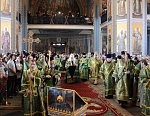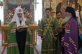 2012 год. Святейший Патриарх Московский и всея Руси Кирилл возглавил служение Божественной литургии в верхнем храме Спасо-Преображенского собора Валаамского монастыря