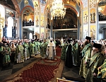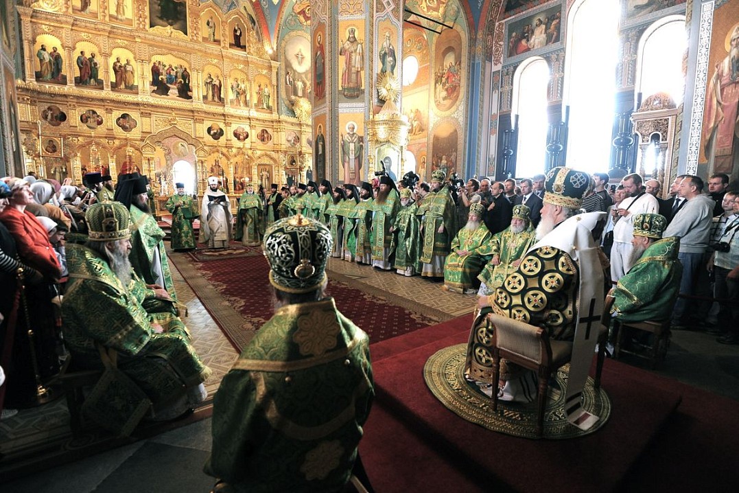 Его Святейшеству сослужили: митрополит Саранский и Мордовский Варсонофий, управляющий делами Московской Патриархии; архиепископ Казанский и Татарстанский Анастасий; архиепископ Петрозаводский и Карельский Мануил; архиепископ Сергиево-Посадский Феогност, наместник Свято-Троицкой Сергиевой лавры; епископ Троицкий Панкратий, наместник Валаамского монастыря; епископ Солнечногорский Сергий, руководитель Административного секретариата Московской Патриархии; архимандрит Исидор (Минаев), начальник Русской духовной миссии в Иерусалиме; протоиерей Михаил Рязанцев, ключарь кафедрального соборного Храма Христа Спасителя г. Москвы; духовенство Татарстанской митрополии и насельники Валаамского монастыря в священном сане.