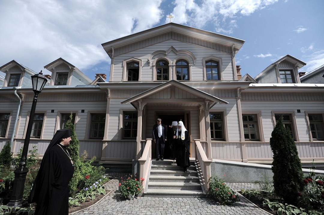 По окончании Литургии Святейший Патриарх Кирилл совершил освящение домового храма святых равноапостольных Кирилла и Мефодия летней гостиницы Валаамского монастыря.