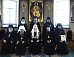 От лица братии Валаамской обители Святейшего Патриарха приветствовал епископ Троицкий Панкратий, который преподнес Его Святейшеству икону преподобных Сергия и Германа Валаамских.
