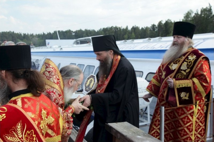 Встречать Святой ковчег вышел буквально весть остров Валаам - вся братия Святой обители во главе с Владыкой Панкратием, местные жители и паломники.