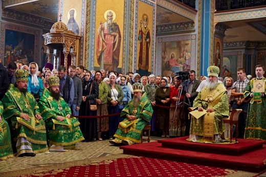 В день памяти преподобных Сергия и Германа Святейший Патриарх Кирилл совершил Литургию в Спасо-Преображенском соборе Валаамского монастыря, 2014