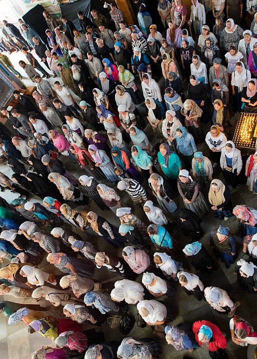 Крестное знамение должно совершаться благоговейно. Крестясь, человек изображает на себе символ Христовых страданий за грехи человеческие, поэтому делать это следует с величайшим благоговением и вниманием. Заходя в храм, мужчины снимают головной убор. Все чаще глаза отмечают темные одежды насельников обители.
