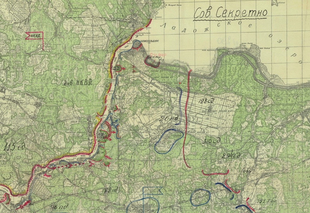 Фрагмент отчётной карты на Ленинградском фронте. Описывает период с 19.09.1941 по 27.09.1941