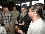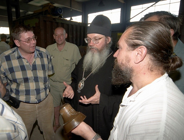 Принимать работу мастеров колокололитейного завода В.Н. Анисимова приехали Председатель Общества церковных звонарей России Игорь Коновалов и игумен Валаамского монастыря епископ Панкратий, пожелавший лично убедиться в том, что колокол достоин Валаама и своего знаменитого предшественника.