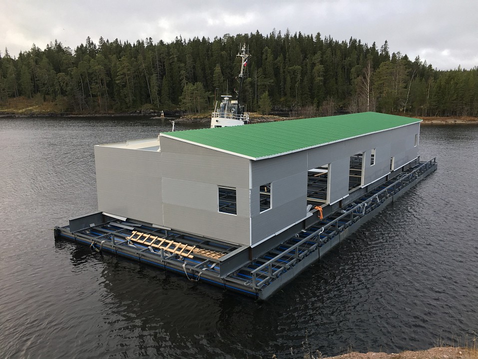 Рядом с садками на плавучем понтоне установлен ангар для склада кормов и приемке сырья с возможностью современного хранения кормов до 30 тонн, помещение для генерации ледяной смеси, подсобные хозяйственные помещения, операторская и пульт охраны. Также в ангаре находится инкубатор и лаборатория с бассейном для выращивания малька. Весной этого года началась подготовка к завозу в новый инкубационный цех икры для получения своего посадочного материала в количестве 120 000 икринок датского производства.