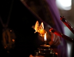 В том числе в двух специальных лампадах его доставили и на святую Валаамскую землю. Вместе с Благодатным огнем представители Фонда апостола Андрея Первозванного привезли в подарок несколько факелов из 33-х иерусалимских свечей. Количество свечей соответствует прожитым земным годам Господа Иисуса Христа. От специальных лампад Владыка зажег эти тридцатитрехсвечные факелы, а от них церковники тут же перенесли огонь на все лампады и все свечи в алтаре, и в храме.