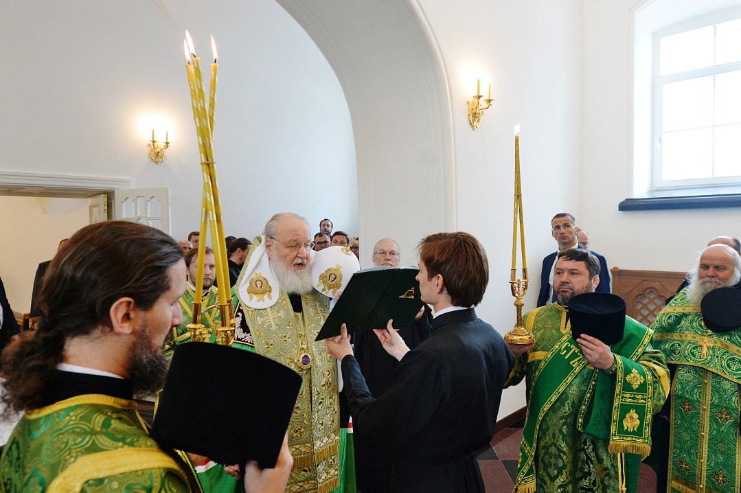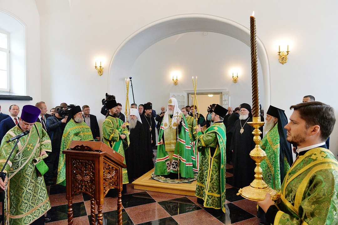 Святейший Патриарх Кирилл освятил надвратный храм святых апостолов Петра и Павла в Валаамском монастыре, 2018
