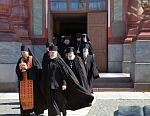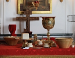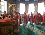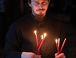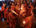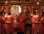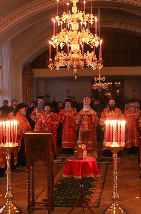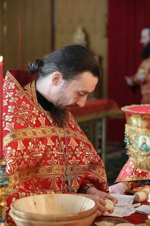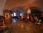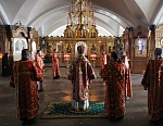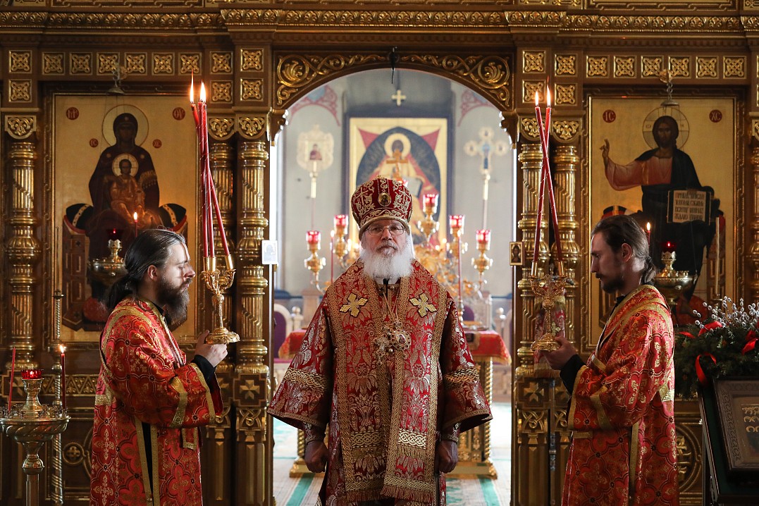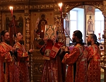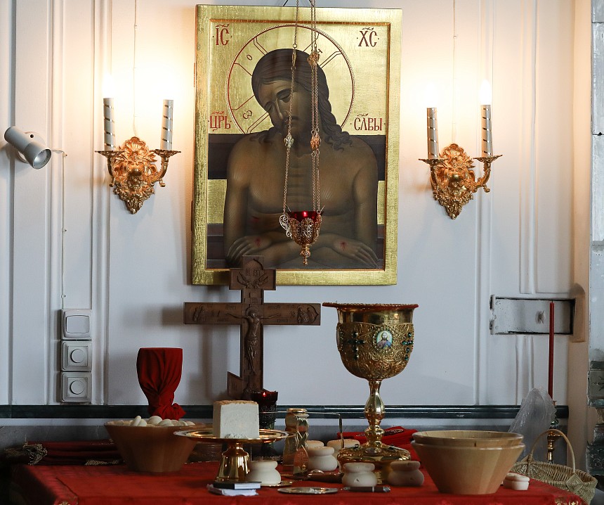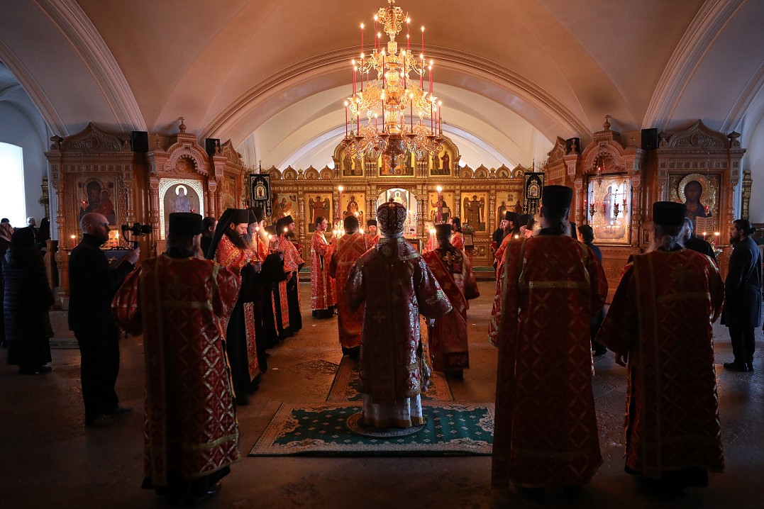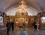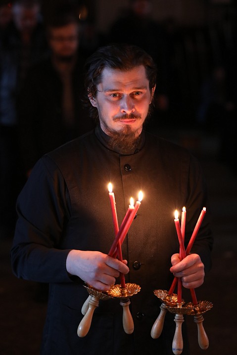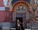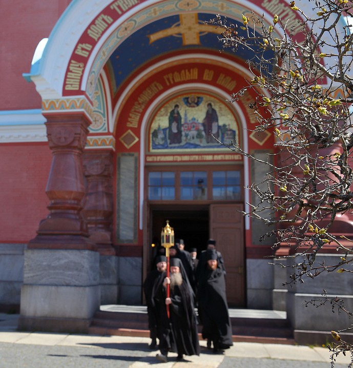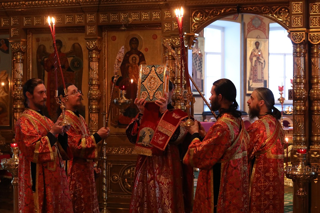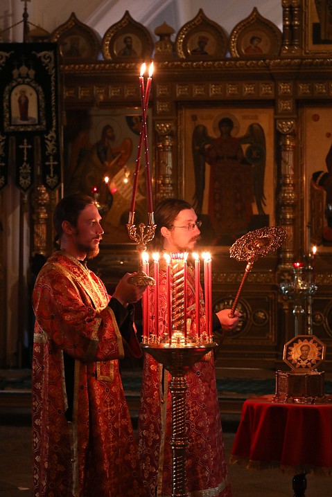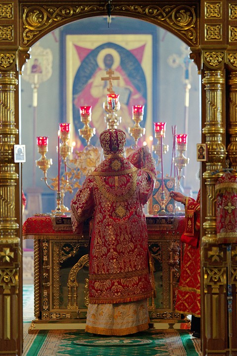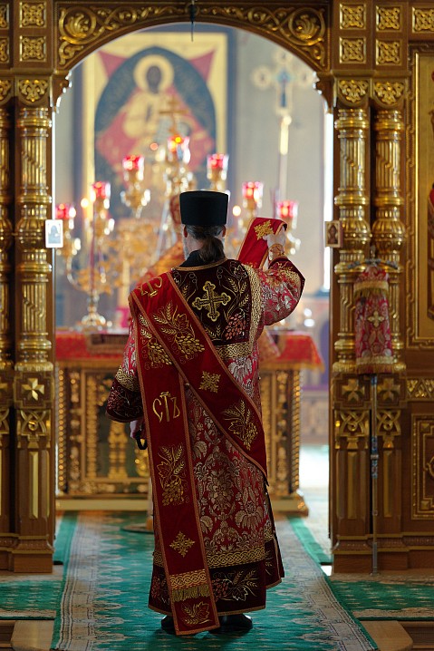 Мы произносим перед входом: «Молитвами святых отец наших, Господи, Иисусе Христе, Боже наш, помилуй нас!». И после ответа: «Аминь»,входим.