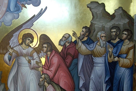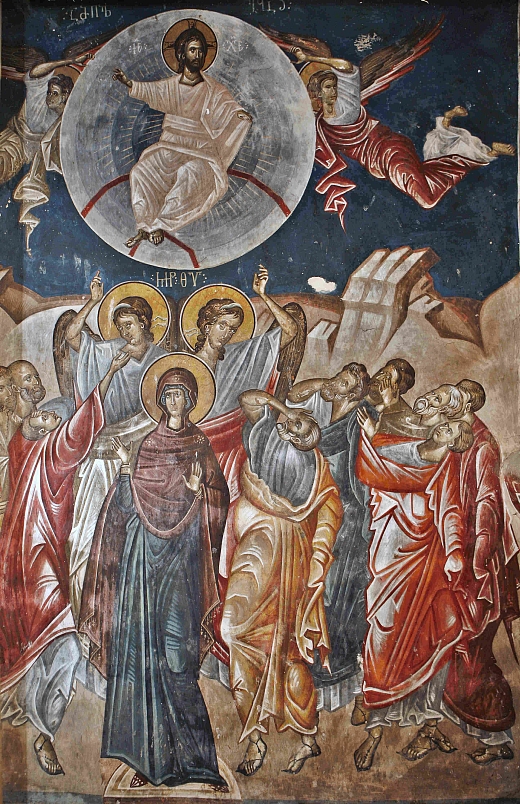 В Священном Писании нам повествуется, что Господь наш Иисус Христос по Воскресении Своем из мертвых сорок дней являлся ученикам и апостолам, говоря им о Царствии Божии. В сороковой же день повелел всем им собраться в Галилеи. И в Вифании на горе Елеон состоялась последняя беседа Спасителя с учениками, где, благословив их, Господь поднялся в глазах их и стал возноситься на небо, пока облако не скрыло Его от очей их. Ученики же продолжали стоять и смотреть на небо – туда, куда вознёсся возлюбленный их Спаситель, Господь наш Иисус Христос. И вдруг явились апостолам два ангела в белых одеждах и сказали им: «Мужи Галилейские! что вы стоите и смотрите на небо? Сей Иисус, вознесшийся от вас на небо, придет таким же образом, как вы видели Его восходящим на небо» (Деян. 1:11).