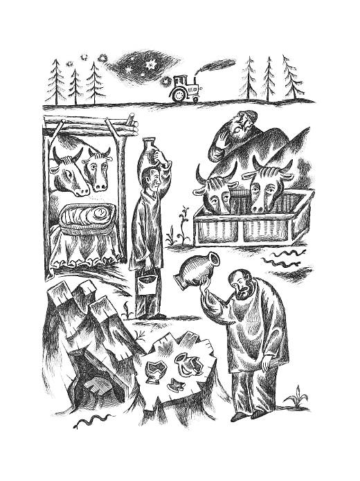 На Пасху ещё хуже вышло. Вернулись с богослужения утром в седьмом часу уставшие, но радостные, примирённые. Причастились все, разговелись. Вышли вместе, как прежде, дружно в коровник с благими намерениями.