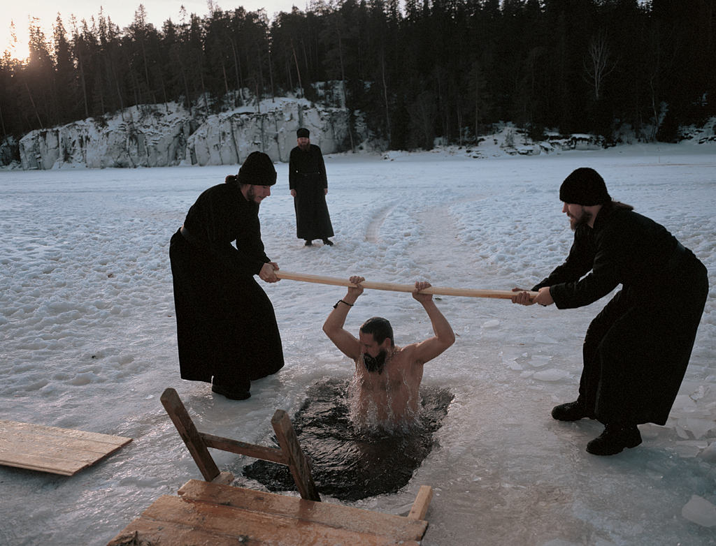 У проруби на выбор — лестница или оглобля[3]. Мы выбрали оглоблю: двое держат, один висит на ней посередине, три движения вниз-вверх. Было холодно, стало жарко.