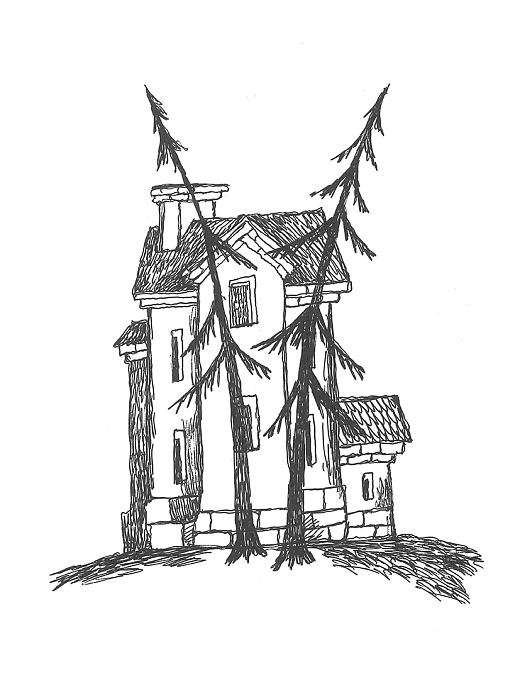Лиственницы у келейного корпуса. Рисунок Аммона Гареева